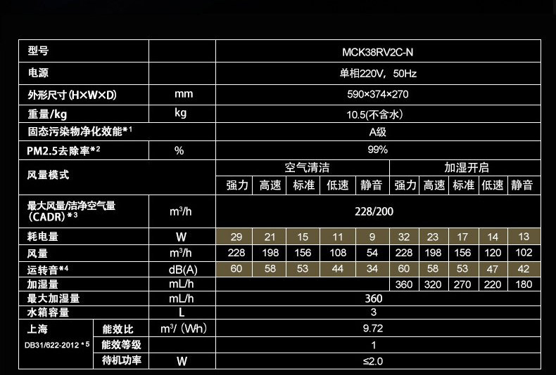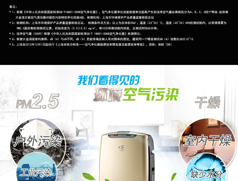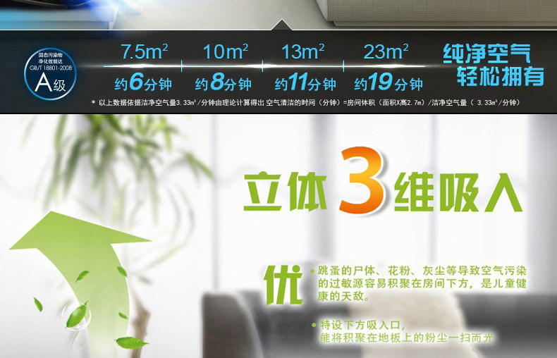• 空气净化器风量:400 立方米/小时