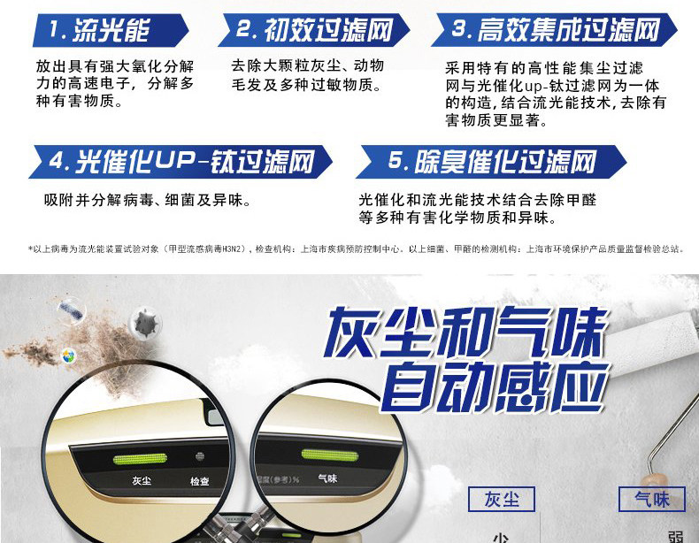 • 功能:定时 除花粉 除甲醛 除烟除尘 杀菌 加湿