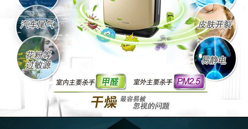 大金空气净化器家用MCK38RV2C除甲醛杀菌加湿机除pm2.5烟尘全能款