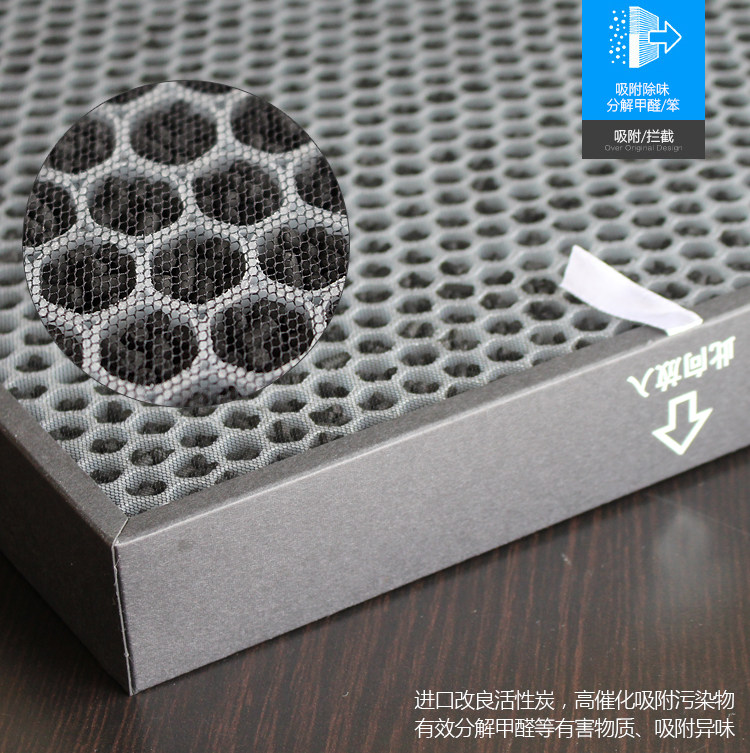 【活性碳滤棉层功能】 ①.过滤多种有害气体和异味,有效净化环境 ② 吸附甲醛、TVOC等