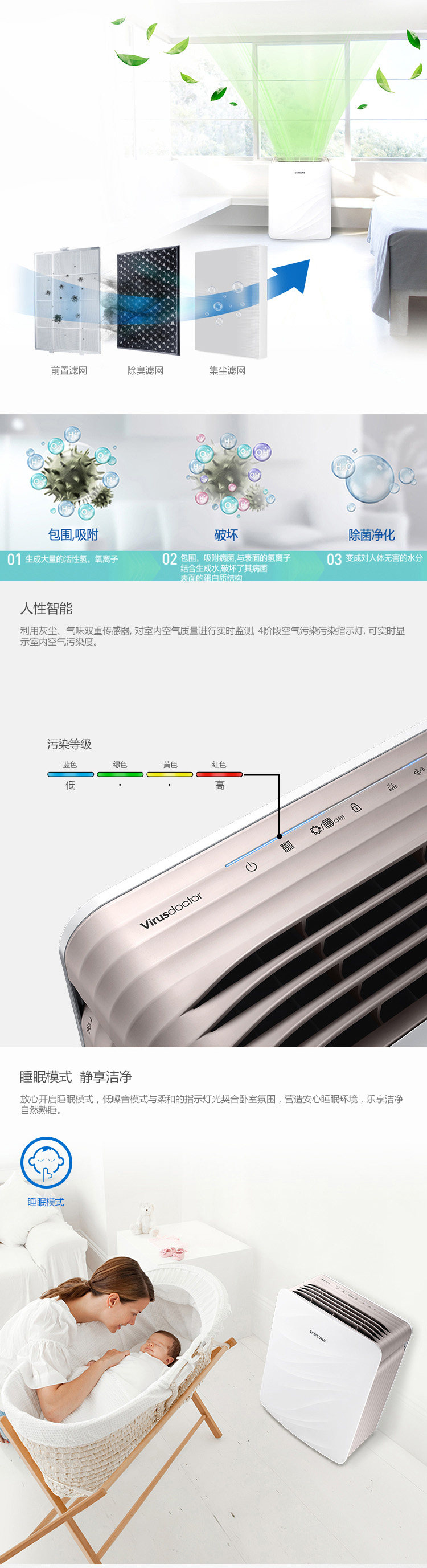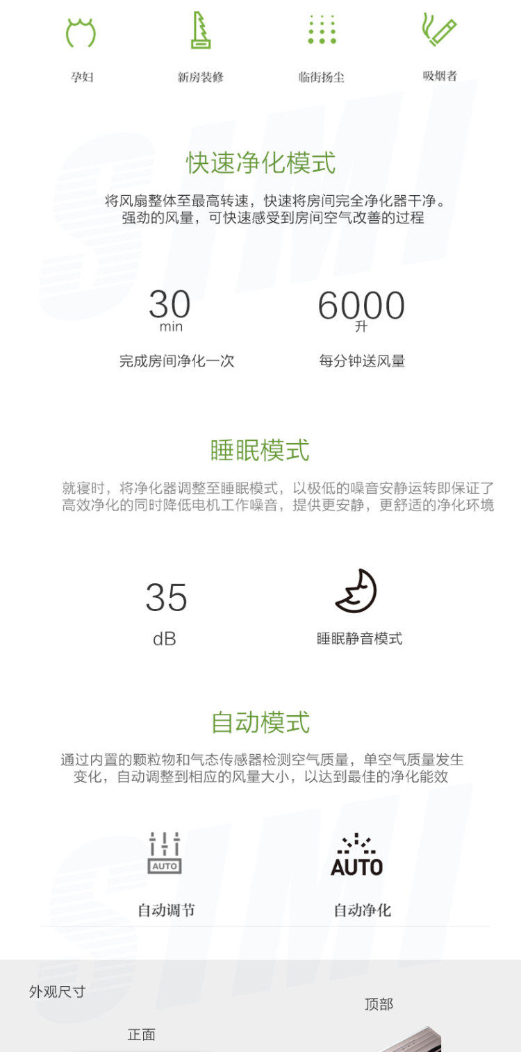 • 功能:除花粉 除甲醛 除烟除尘 杀菌
