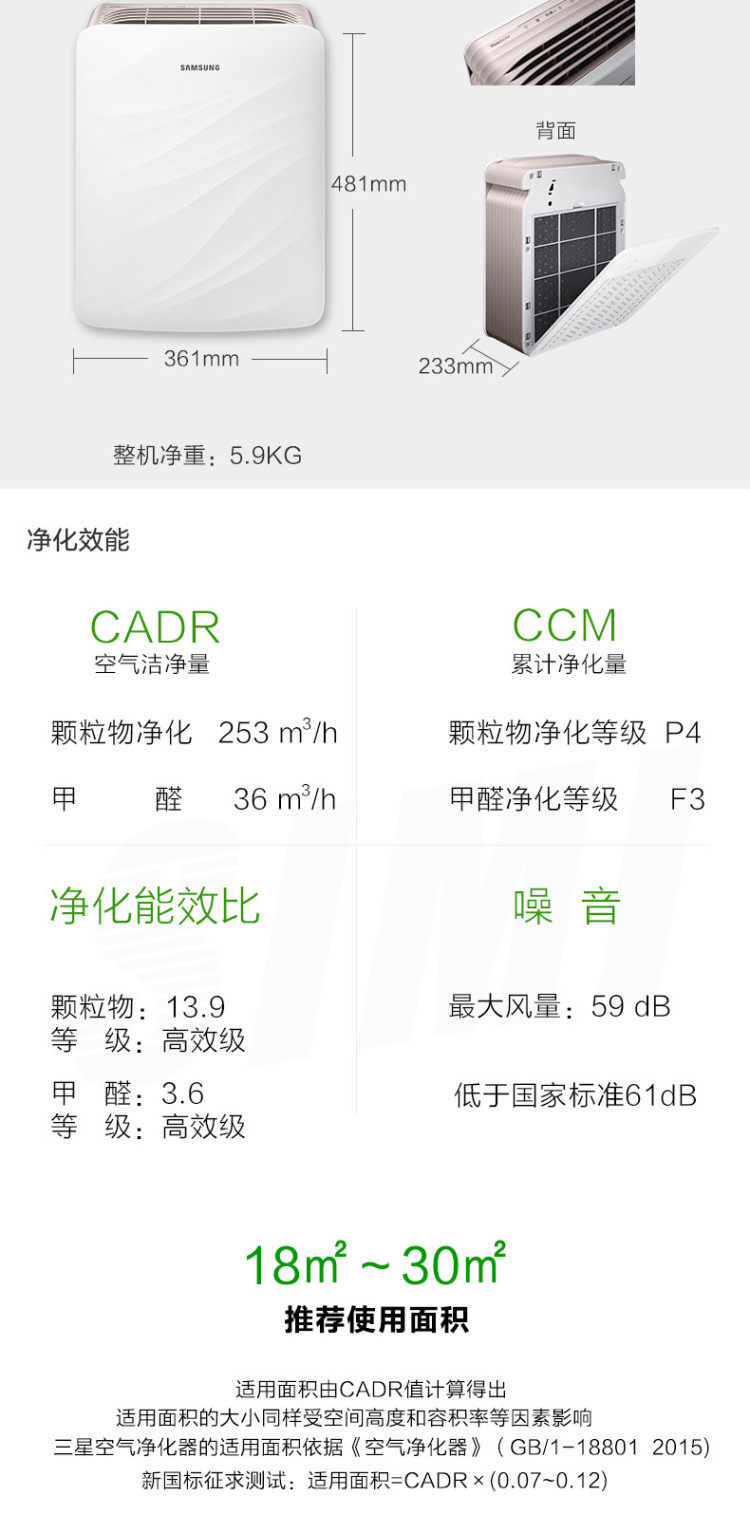 • 空气净化能效等级:高效级