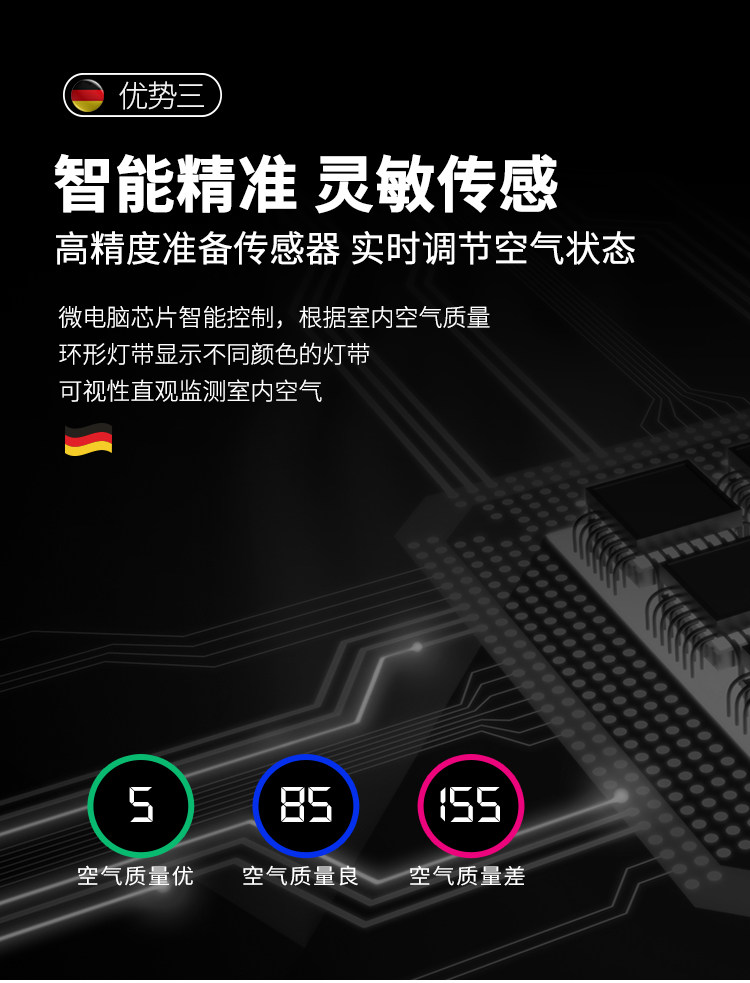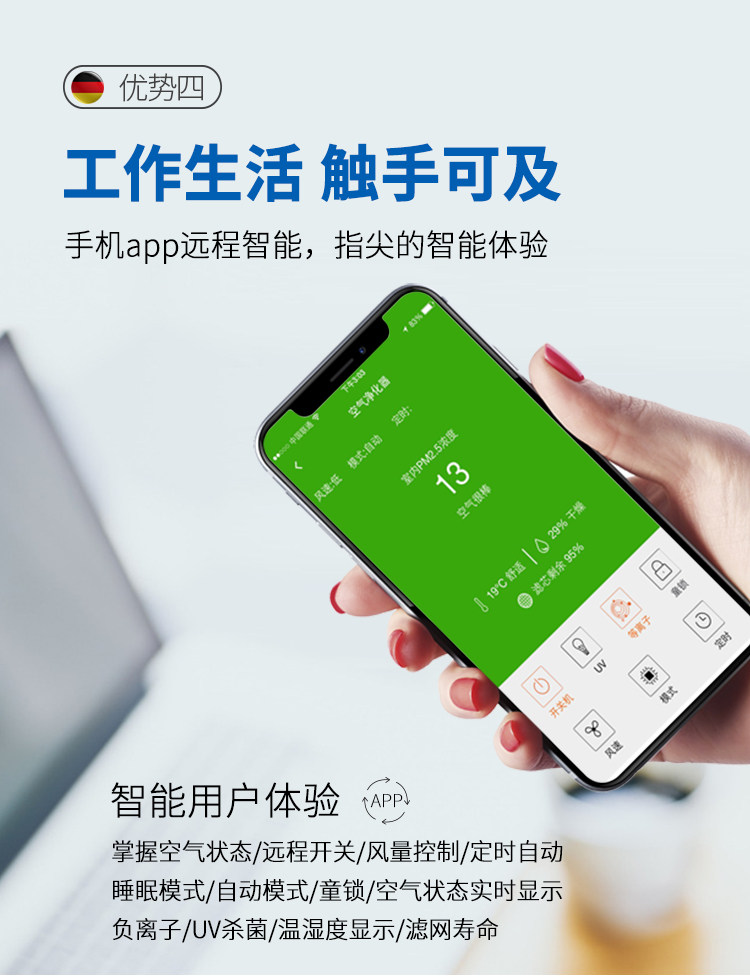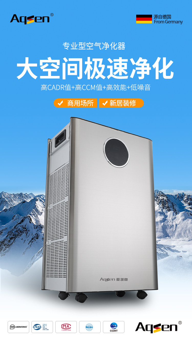 德国爱淇森空气净化器除甲醛雾霾杀菌pm2.5家用办公室大面积智能