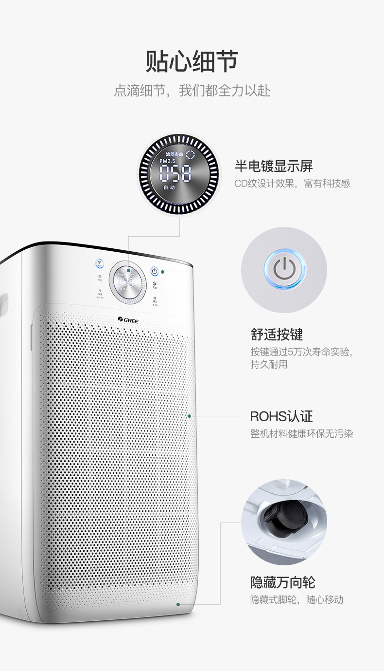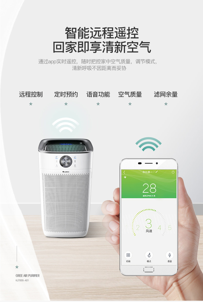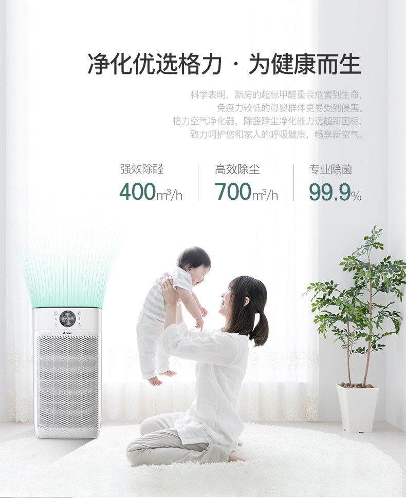 之前买了格力除湿机能远程操控很方便,这次元旦活动又配了格力空气净化器也是远程操控,放在家里大气实用,有机会再把冰箱空调也换成格力的那就全部实现智能化管理啦。