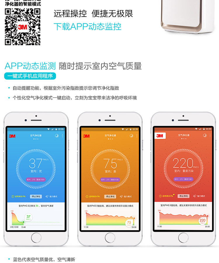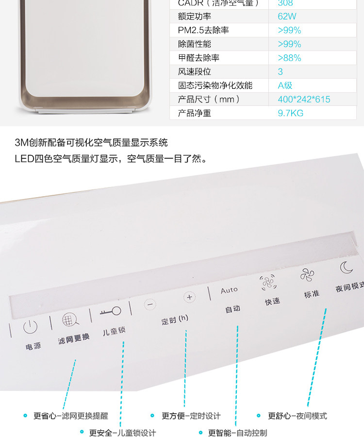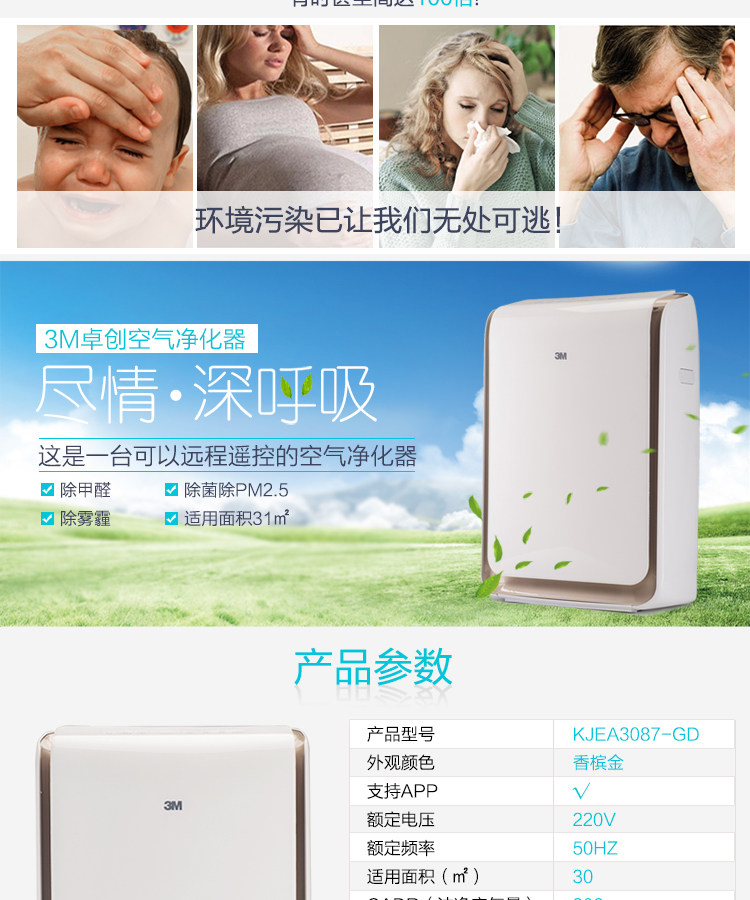 3m空气净化器家用办公室智能氧吧KJEA3087除异味PM2.5甲醛霾