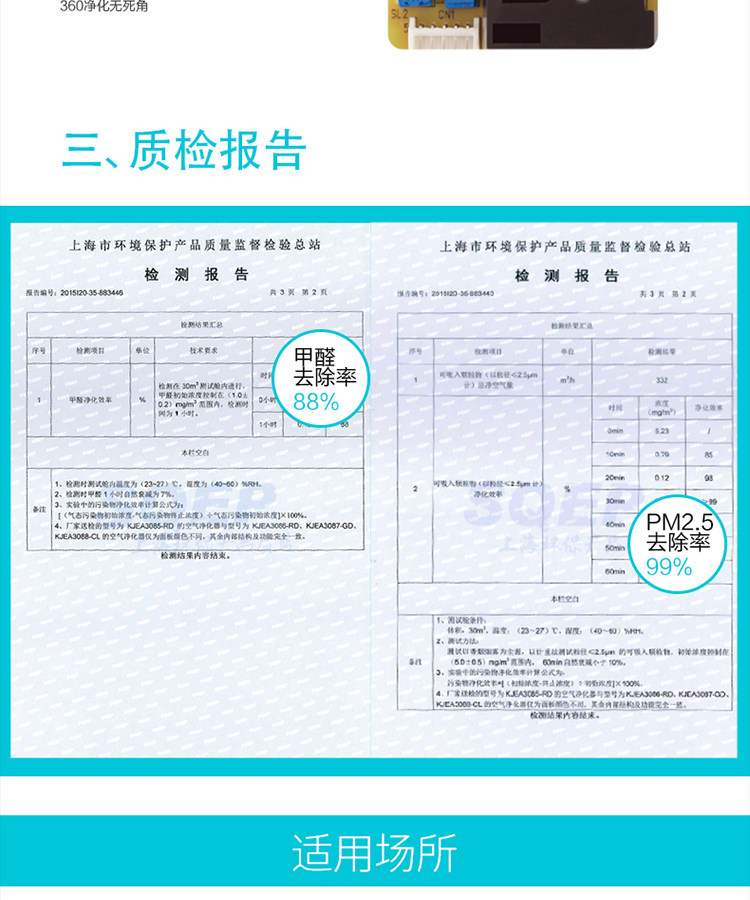 • 甲醛CADR值:65立方米/小时