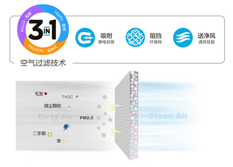 • 功能:除花粉 除甲醛 除烟除尘 杀菌