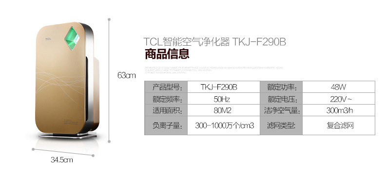 [桥磊智能家居空气净化,氧吧]TCL空气净化器家用幼儿园除甲醛PM月销量0件仅售1558元