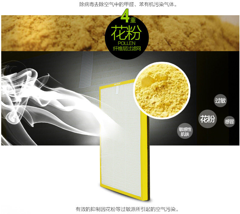 • 功能:定时 除花粉 除甲醛 除烟除尘 杀菌 加氧