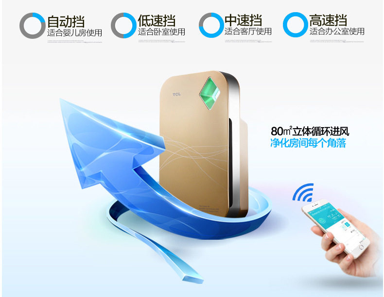 TCL空气净化器家用幼儿园除甲醛PM2.5智能除烟除尘除雾霾手机WIFI