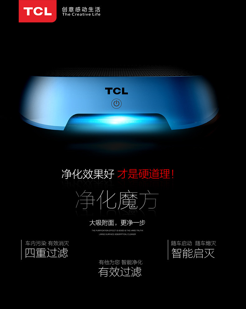 [正品薄利电器专销店空气净化,氧吧]TCL空气净化器家用pm2.5车载车月销量0件仅售283元