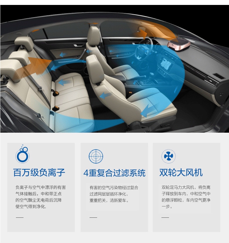 • 工作原理:活性炭 负离子 臭氧