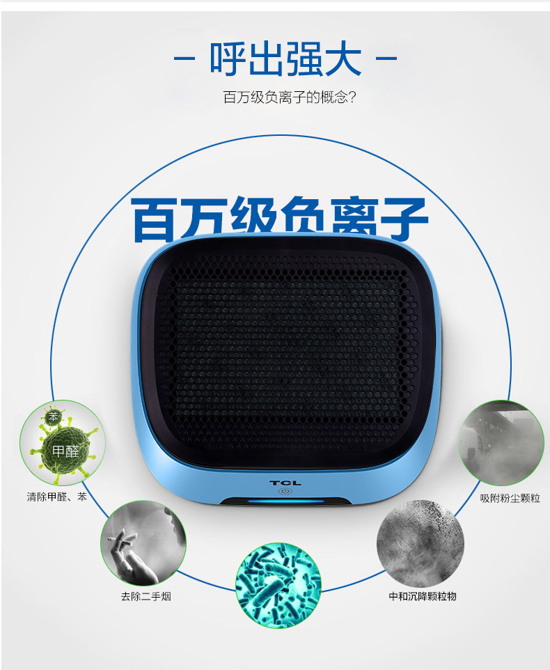 TCL空气净化器家用pm2.5车载车用车内油烟空气净化器除甲醛负离子
