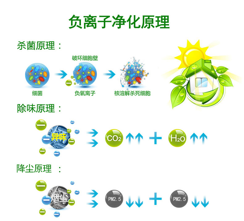 • 工作原理:负离子 臭氧