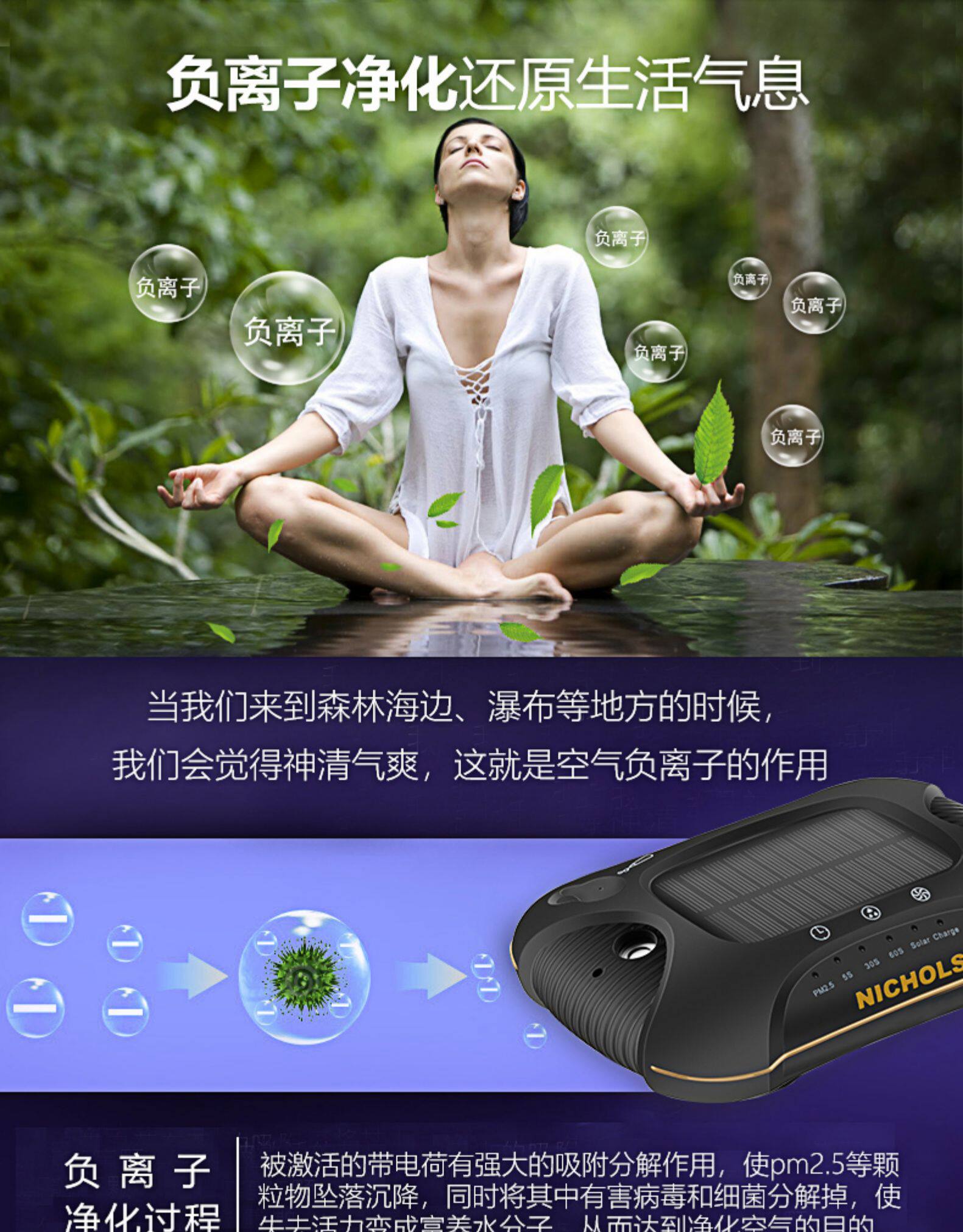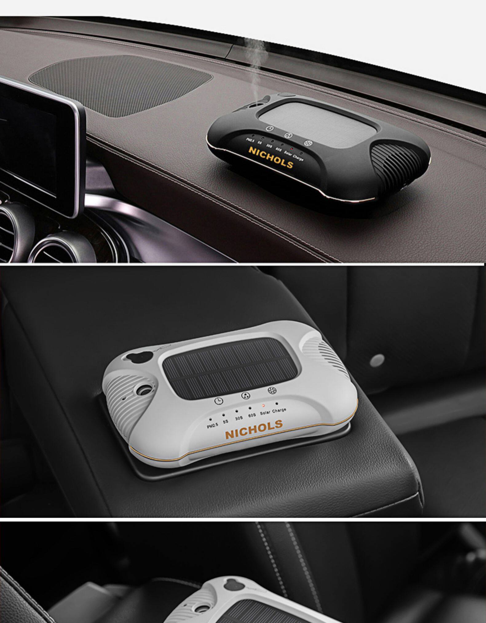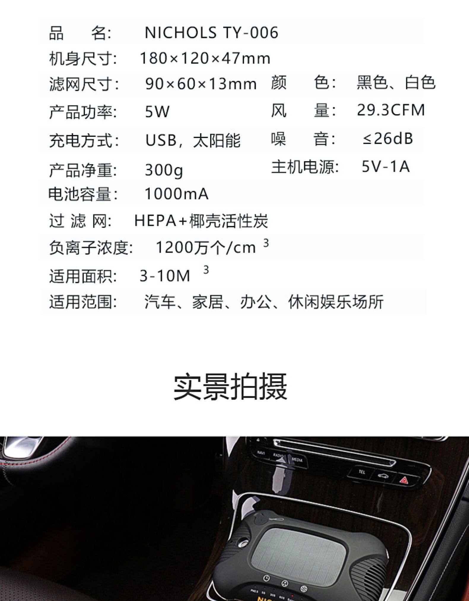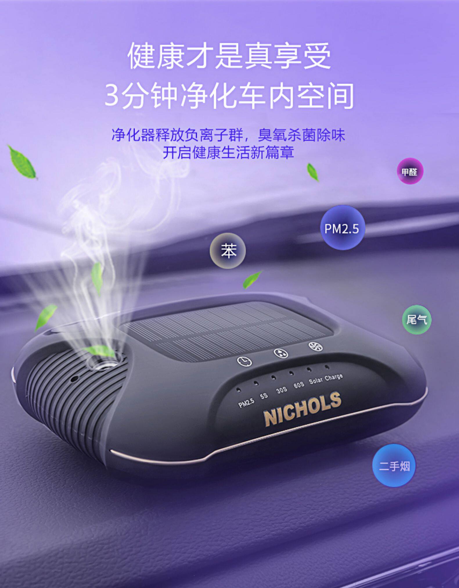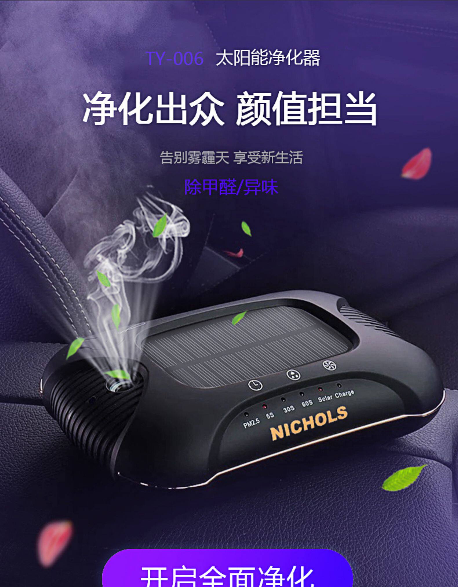 这个产品是很好的,功能齐全,太阳能充电、香薰、空气净化都有;外观设计也很时尚,按钮很方便,触摸反应灵敏。放在新车里一晚上(车里还同时放了活性炭等),车里空气清新了好多好多。香薰打开后,湿润润的,几乎完全静音。店家送的小礼物也让使用更加方便了,非常细心贴心的店家。