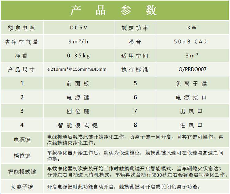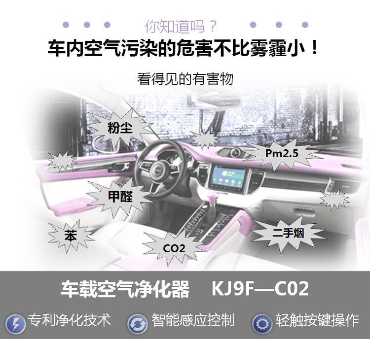 派瑞车载空气净化器KJ9F-C02 新车除甲醛除异味负离子清新空气