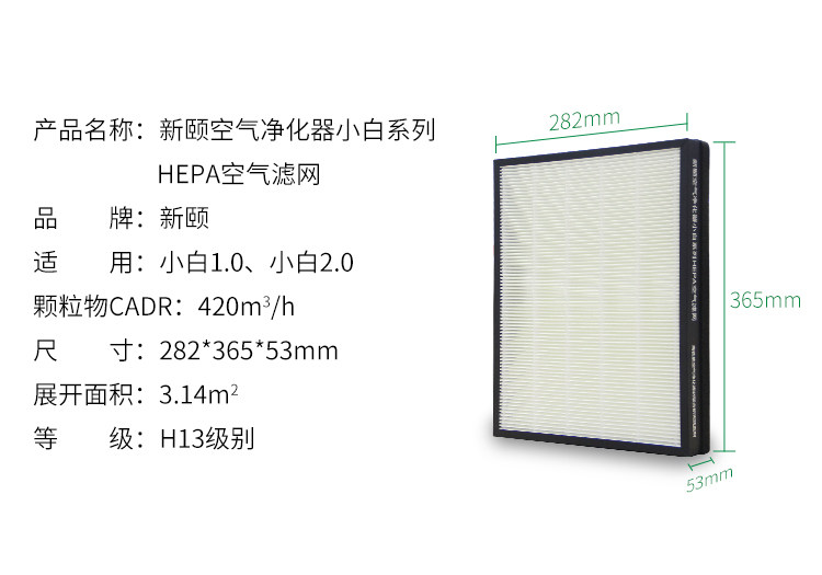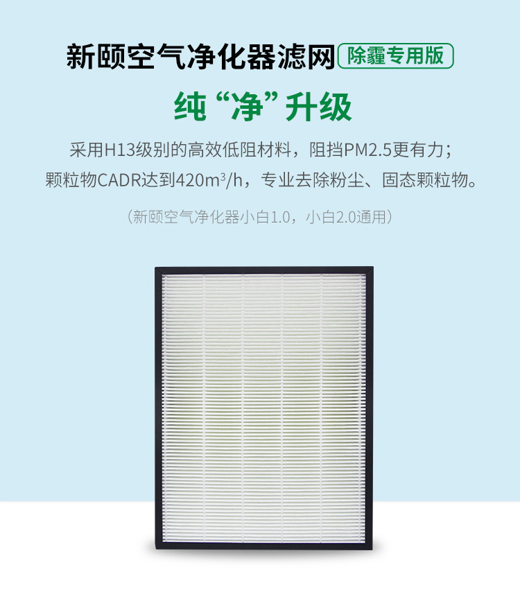 新颐空气净化器小白系列纯HEPA滤网 小白1.0和小白2.0通用