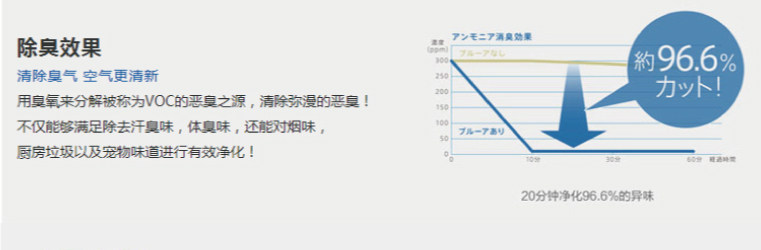 臭氧发生量:最大0.5mg/h(对人体不会有任何影响)