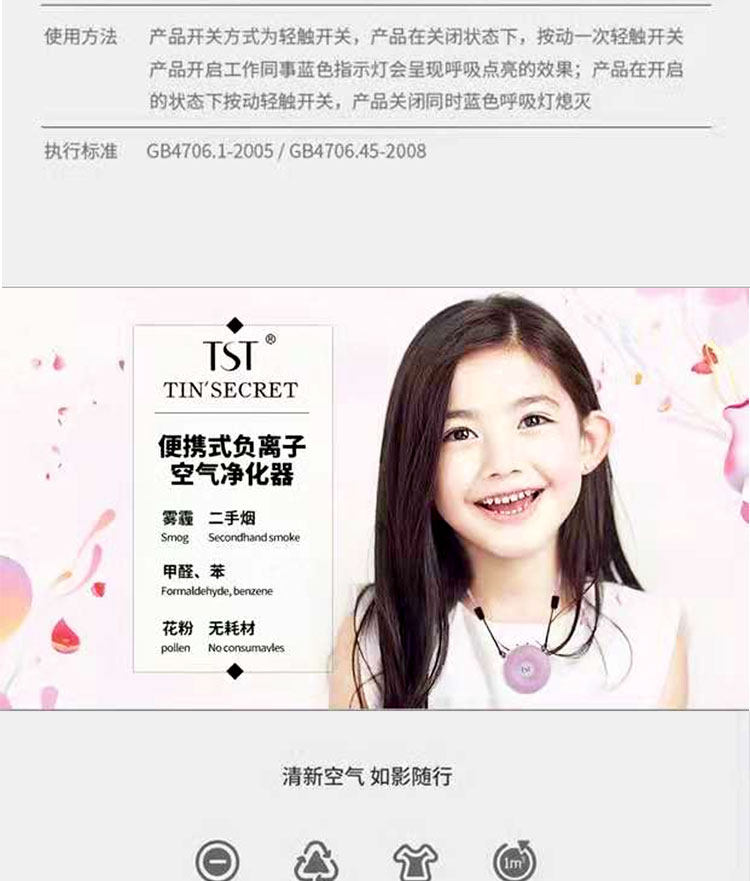 TST抖音同款便携式空气净化器儿童项链除雾霾负离子防甲醛二手烟