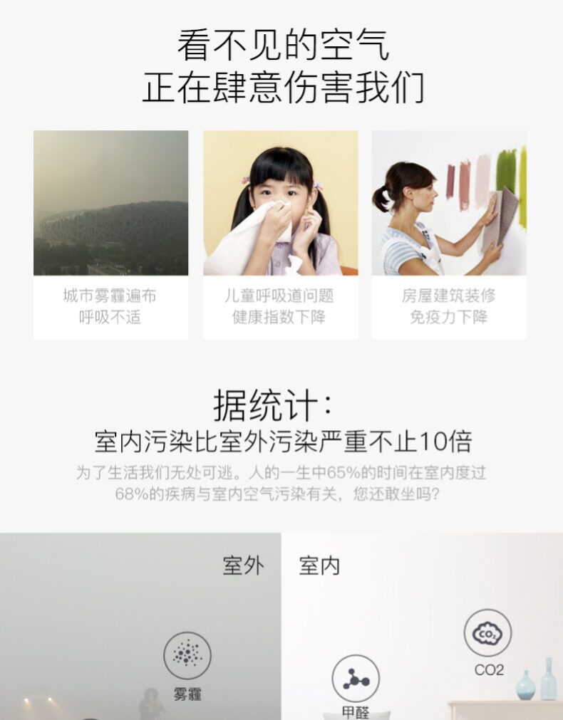 使用说明书太简单、不直观不明晰:底盘螺丝设计太差、安装太麻烦:显示太简单,除了臭氧数字,根本无法知晓设备运行除pm或甲醛的效果:智能化程度太低,无法根据工作效果自动进行调解。这个时代买这样的价买来这个东西实在太不值,远大离成功太远。