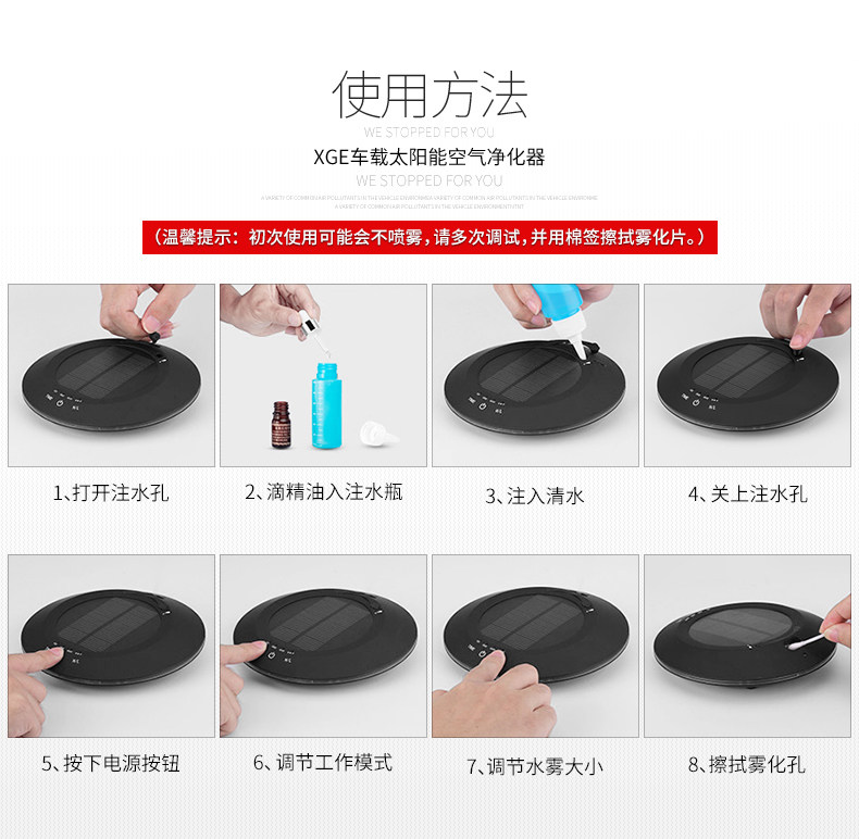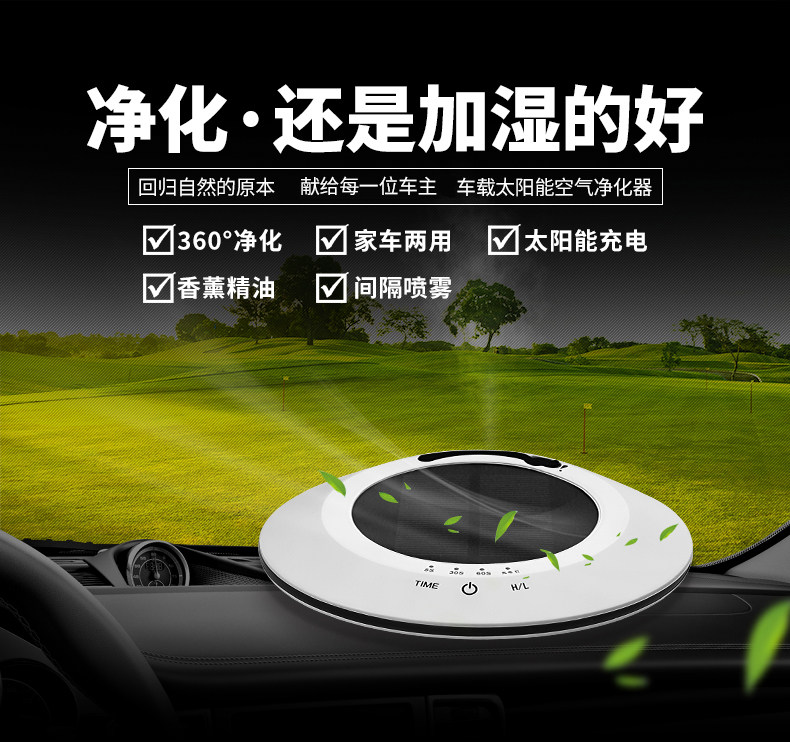 太阳能车载加湿器空气净化器迷你汽车用香薰机喷雾除异味礼品氧吧