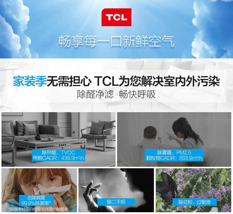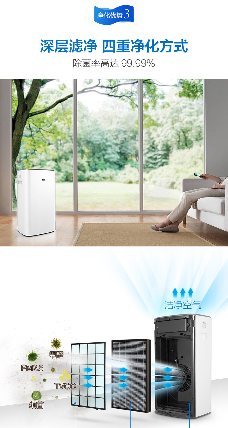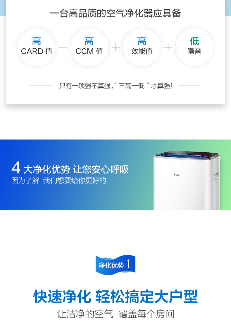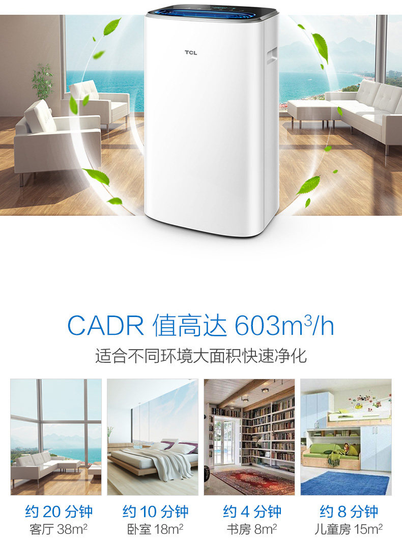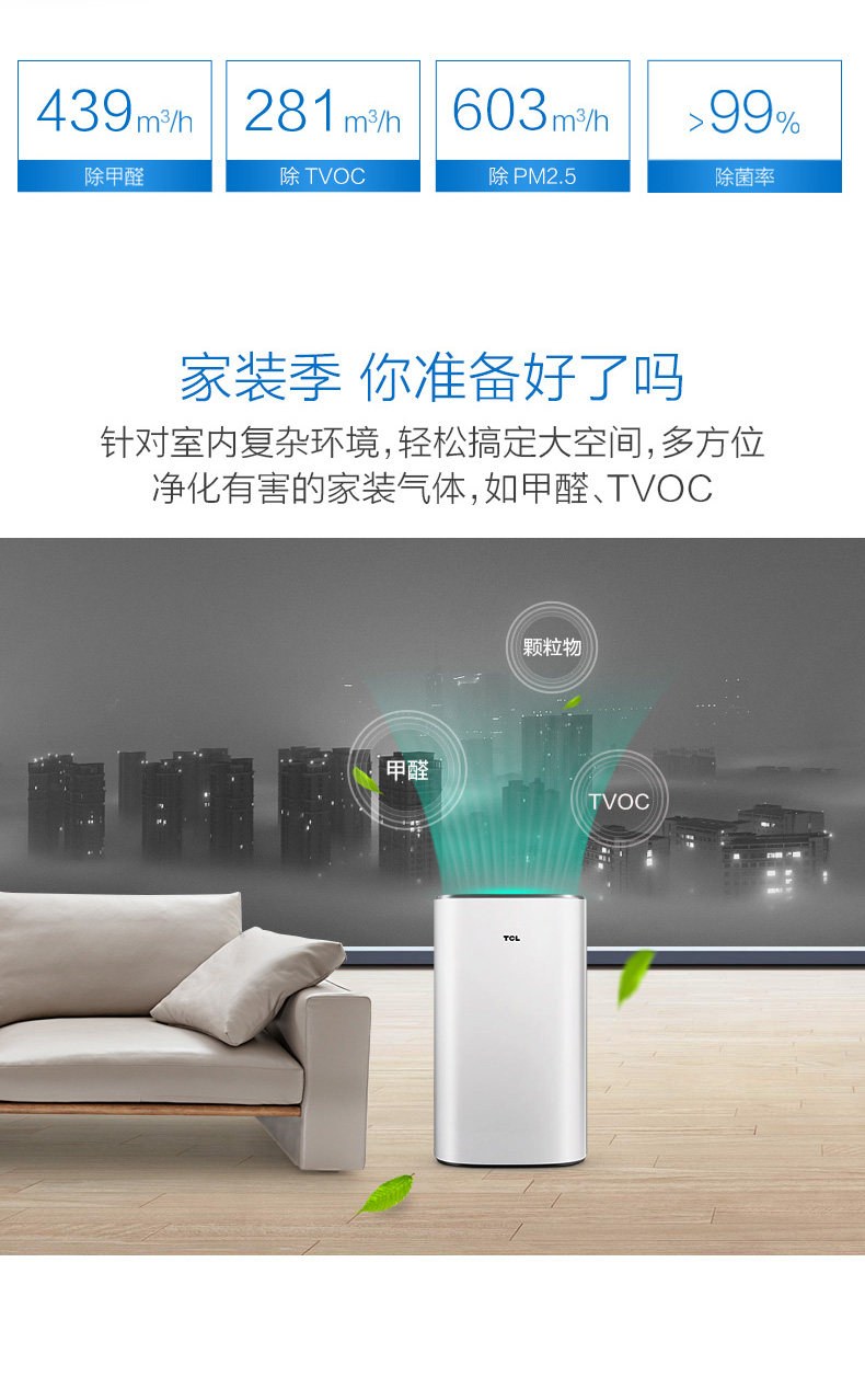 新房装修,老婆看了一堆空气净化器品牌,最后还是我拍板选择了TCL这款,一定要支持国货。下单后预约送货,物流也超级给力。收到货后,第一时间开机试了一下,非常安静,风量调到三档声音也非常小。除PM 2.5和甲醛效果非常明显。值得推荐!