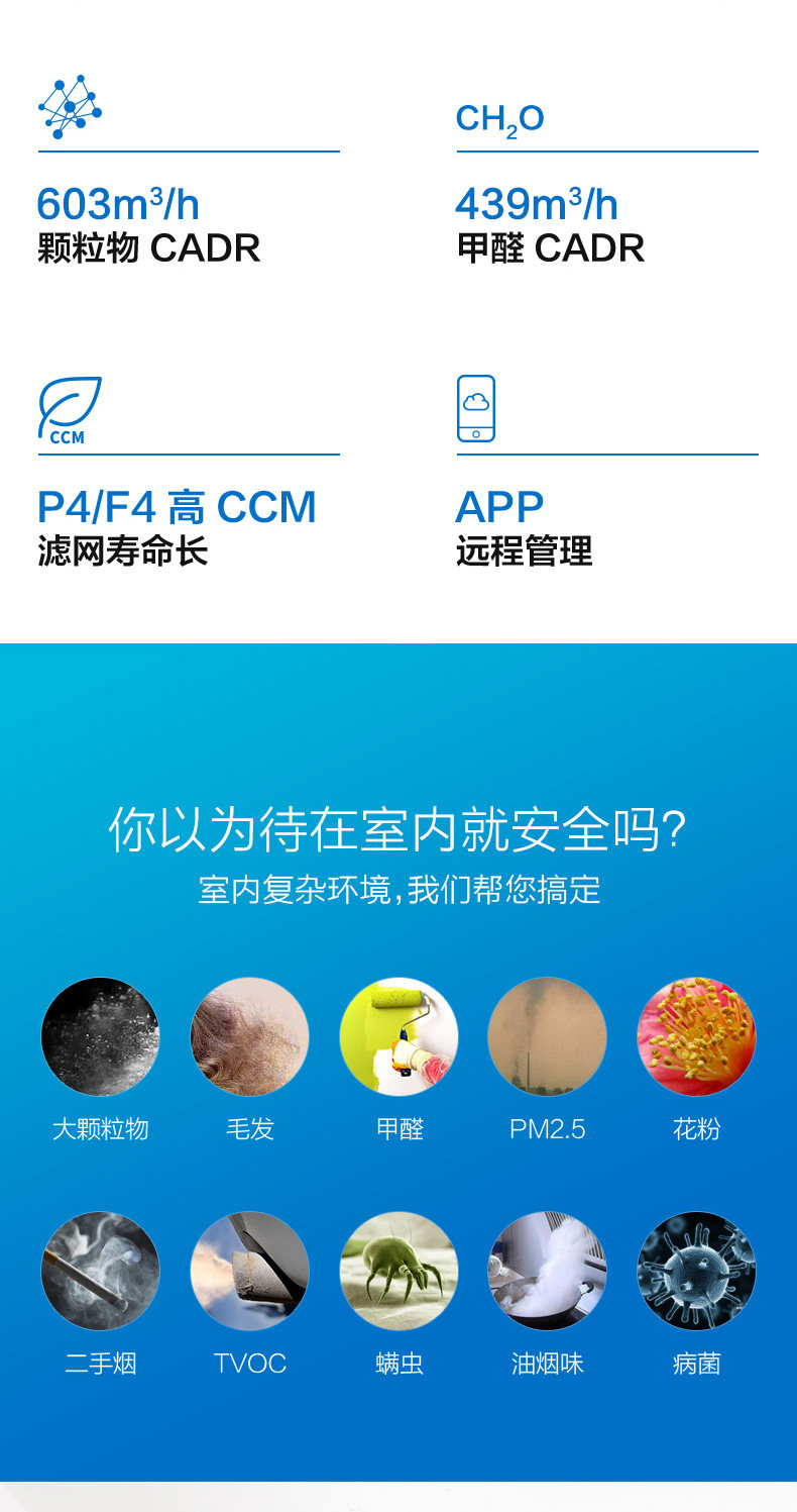 家里装修要提早入住,就找一款能除甲醛的空净,看到这款甲醛CADR有400多,比其他品牌的颗粒物CADR还高,正好还有优惠活动,所以就选了这款,产品包装很好,外观时尚,体积虽大但自带滑轮方便移动,还支持天猫精灵控制,推荐购买