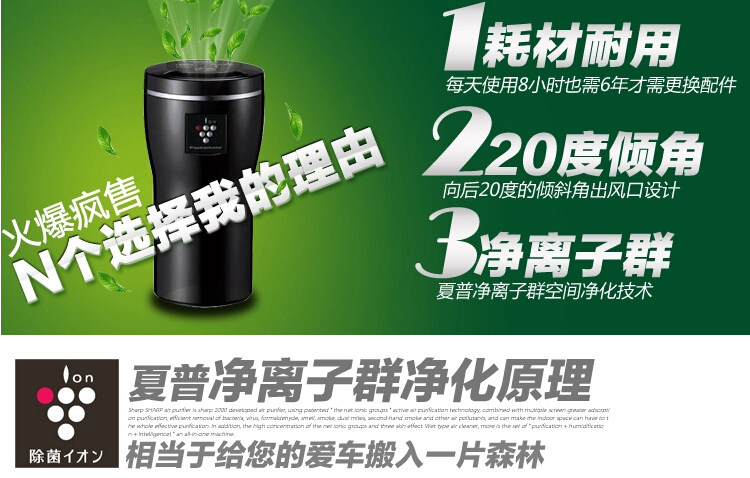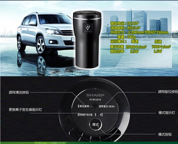 [Blue爱家空气净化器空气净化,氧吧]夏普车载空气净化器IG-DC2Z-N月销量1件仅售588元