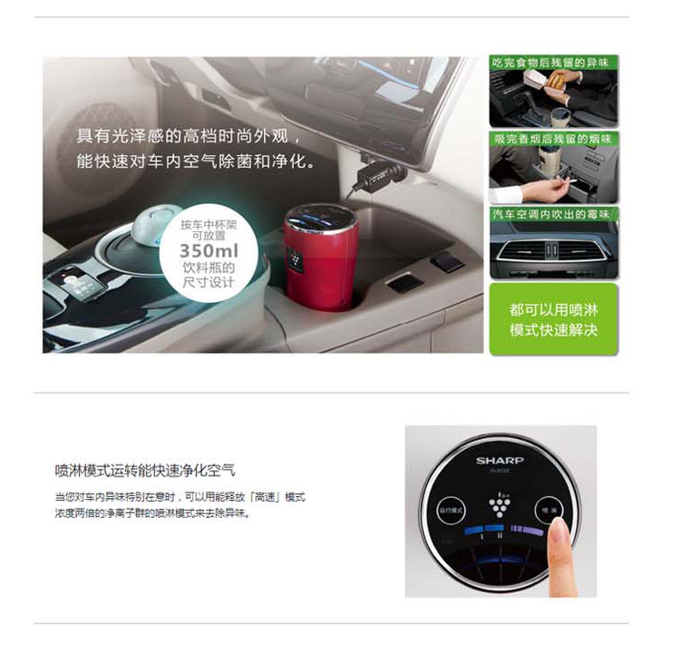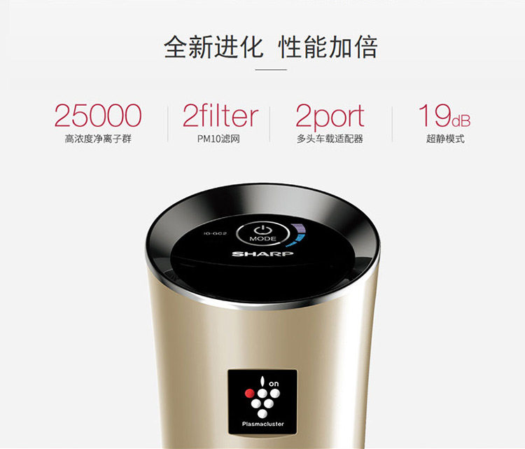 夏普车载空气净化器IG-DC2Z-N/R/B, IG-BC2Z-B除甲醛烟味雾霾
