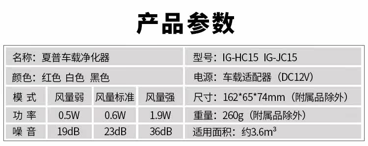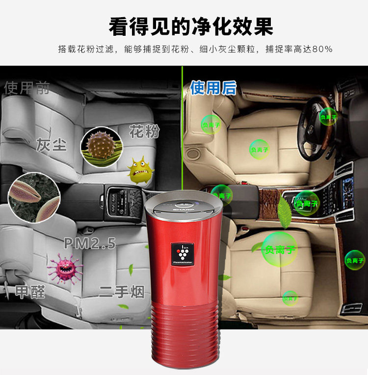 日本进口夏普IG-HC15/JC15车载空气净化器除味净化空气奥迪去味