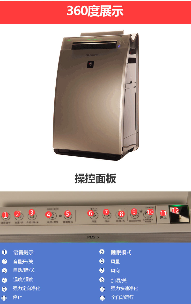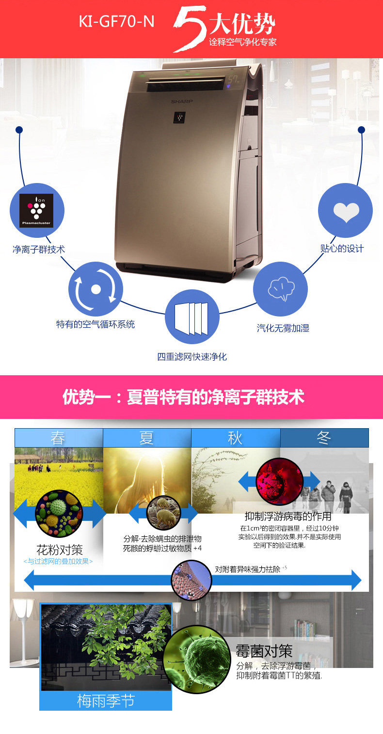 (72)[夏普荣拓专卖店空气净化,氧吧]夏普空气净化器家用W38月销量99件仅售2299元