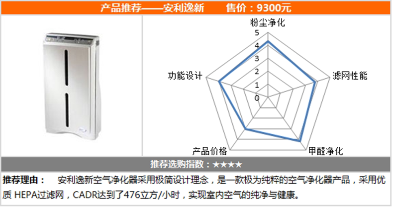 从2004年7月起,Energy Star的评级适用于空气净化器,符合其认证标准的产品耗电量必须比市售空气净化器平均用电保准至少低35%。由此体现,逸新空气净化器是一台高效能、低耗电的环保产品