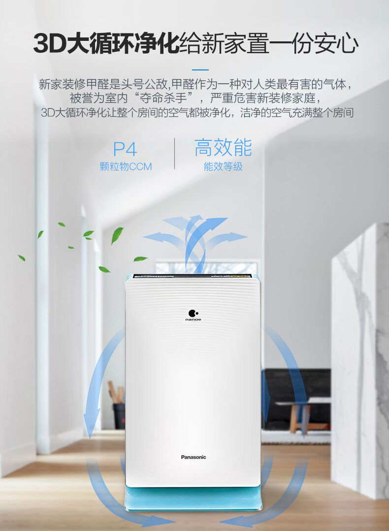 [松下文迪专卖店空气净化,氧吧]松下空气净化器家用室内吸除二手烟去甲月销量3件仅售1199元