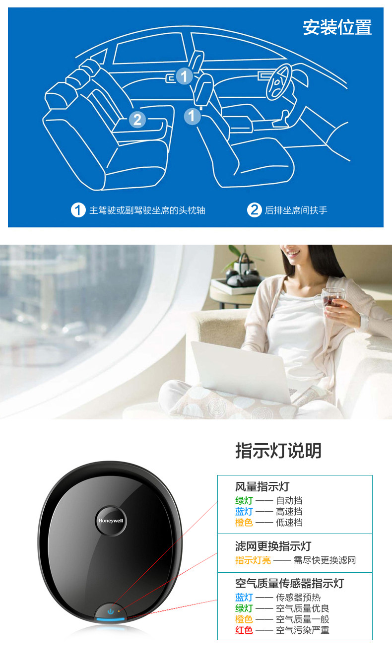 霍尼韦尔honeywell正品HVP200车载空气净化器快速净化除甲醛PM2.5