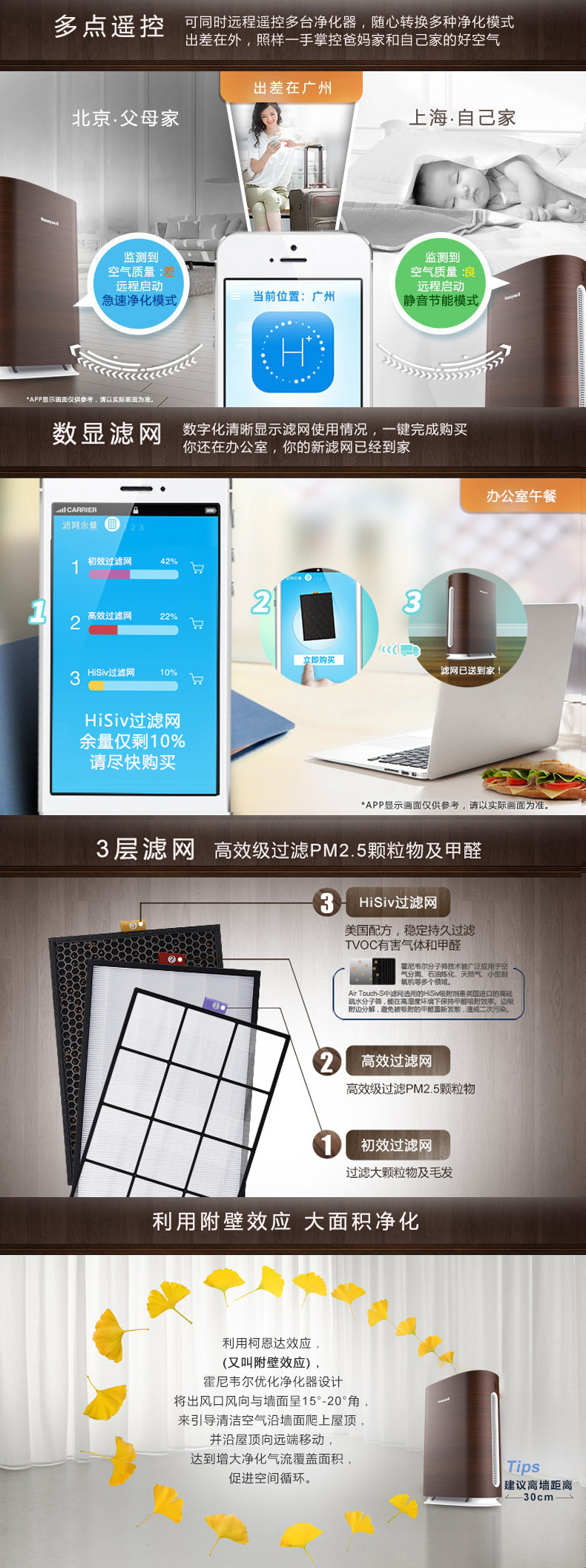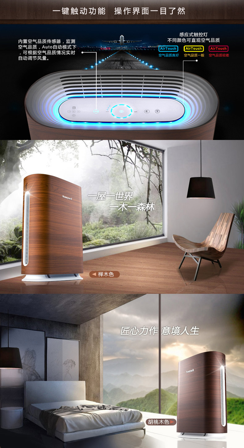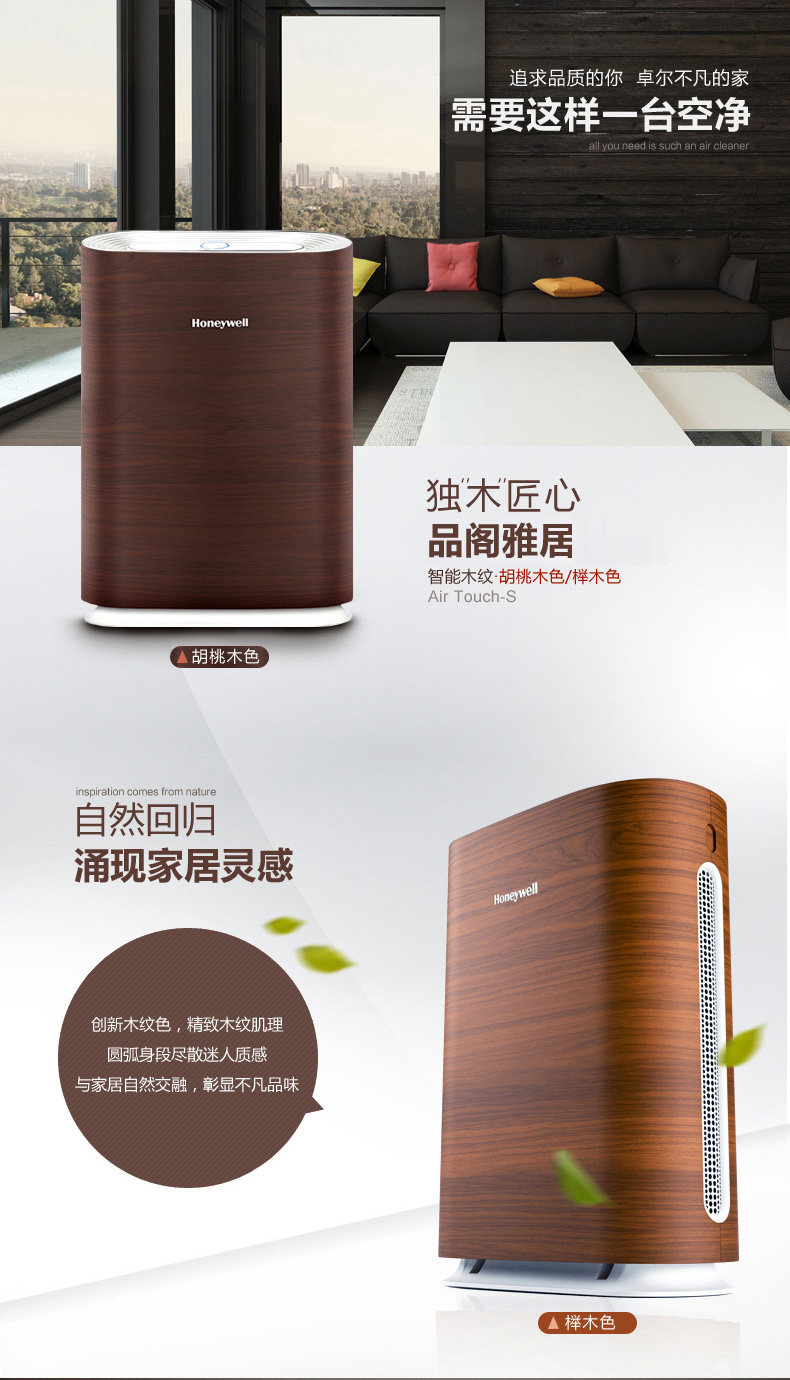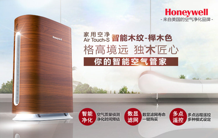霍尼韦尔空气净化器KJ300F-PAC2101T1家用静音浅木纹除甲醛雾霾