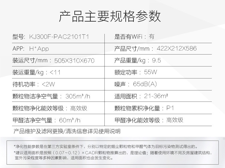 • 空气净化能效等级:高效级