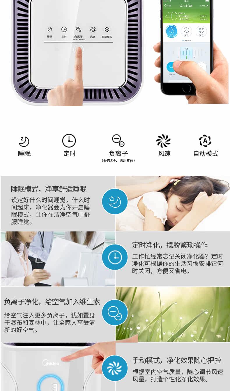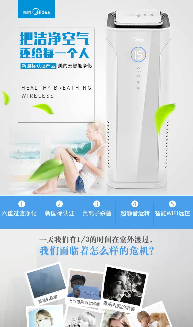 [midea美的新七天专卖店空气净化,氧吧]美的智能空气净化器家用商用除甲醛除花月销量1件仅售1558元