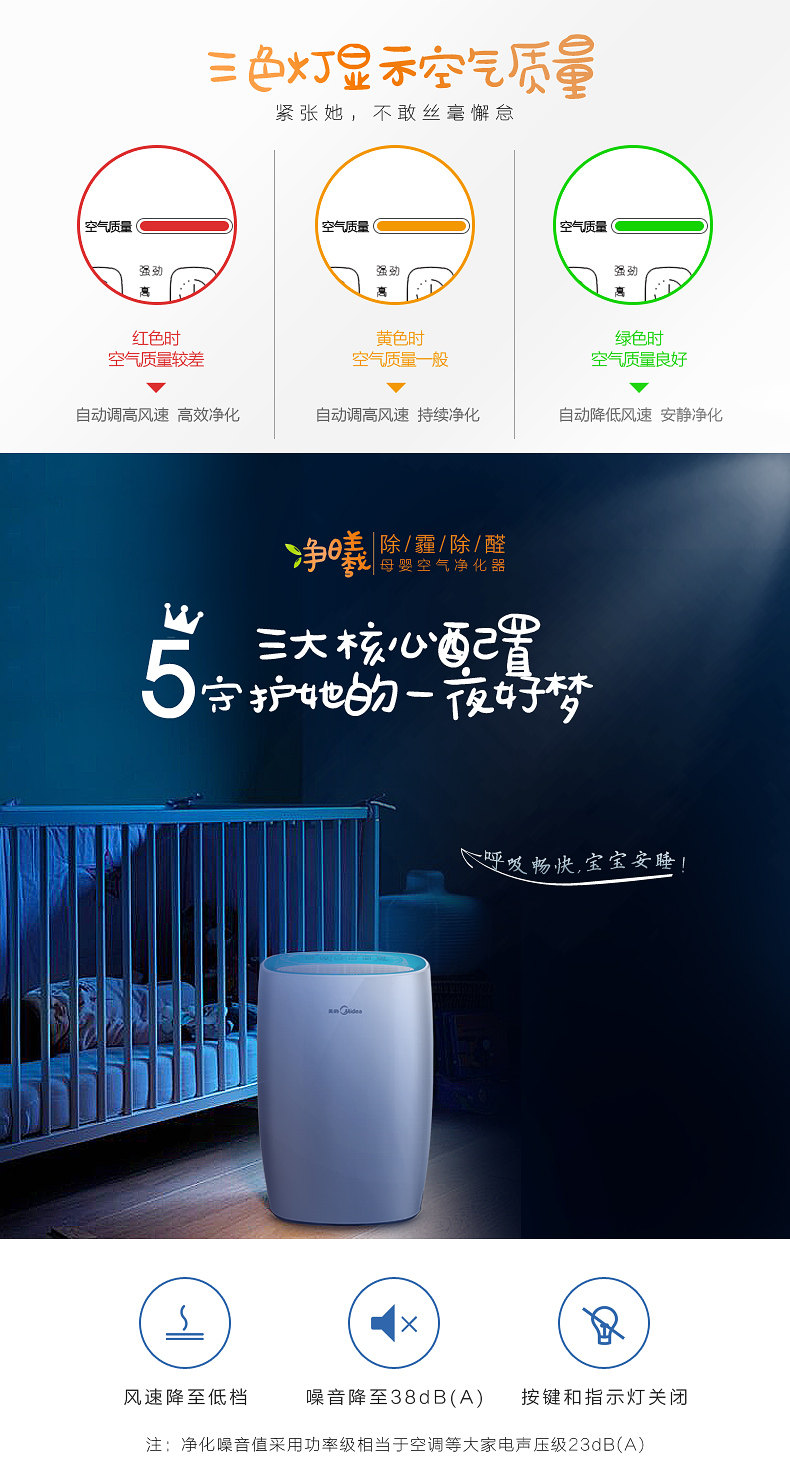 • 功能:定时除VOC除花粉除颗粒物除甲醛除烟除尘杀菌除雾霾