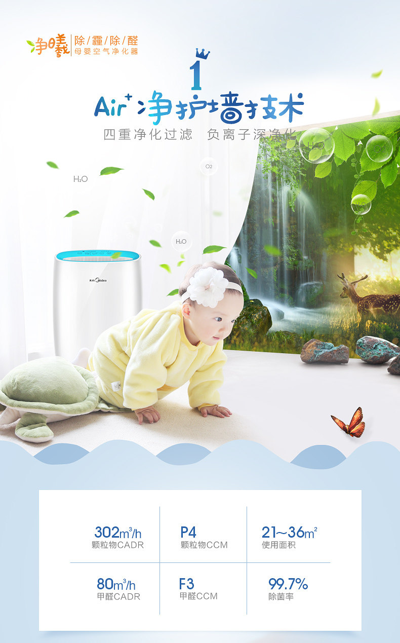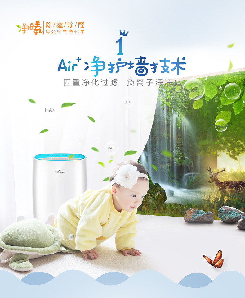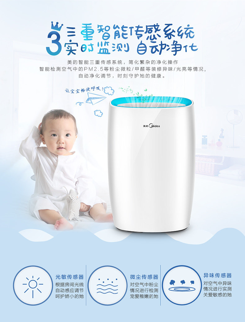 美的空气净化器家用氧吧卧室除甲醛除霾pm2.5办公室负离子净化