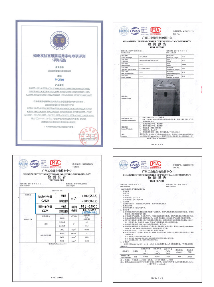 • 颗粒物CADR值:1000立方米/小时