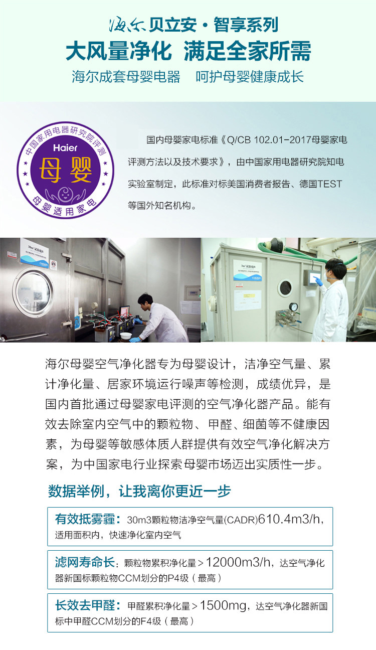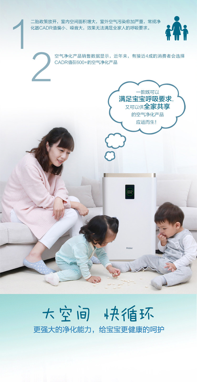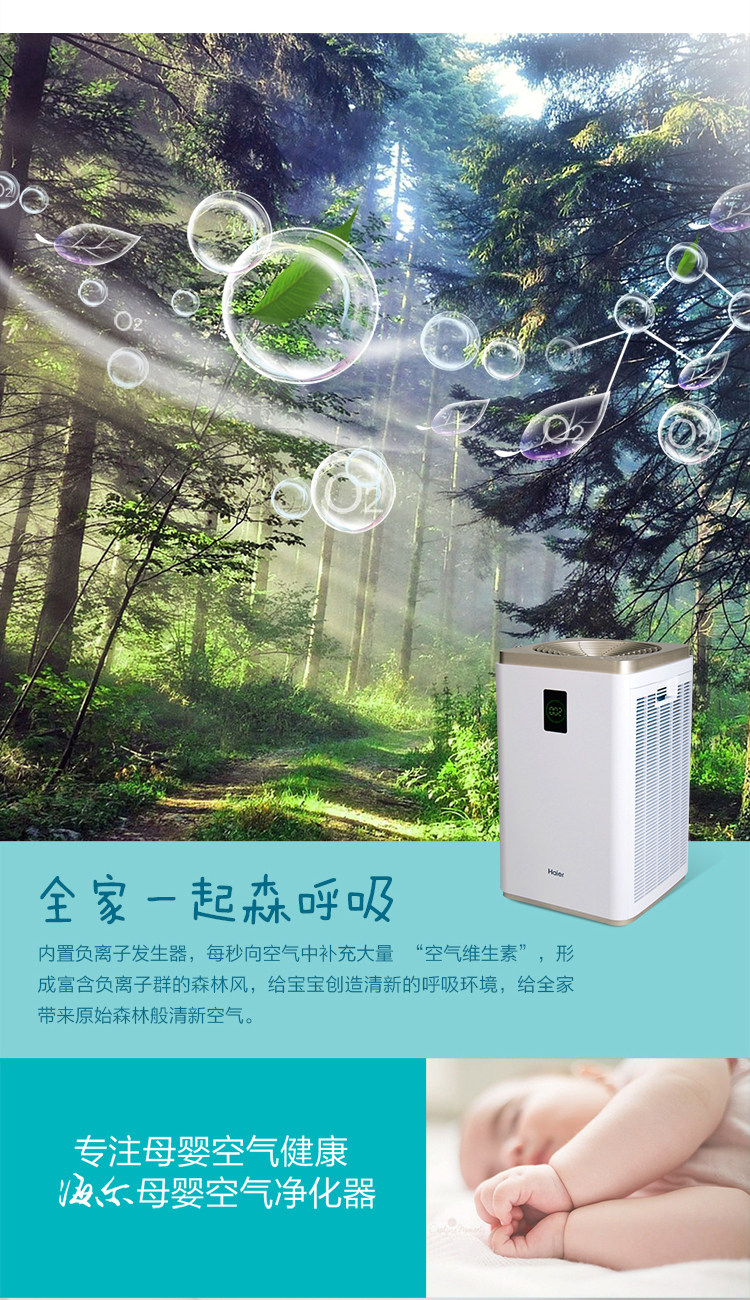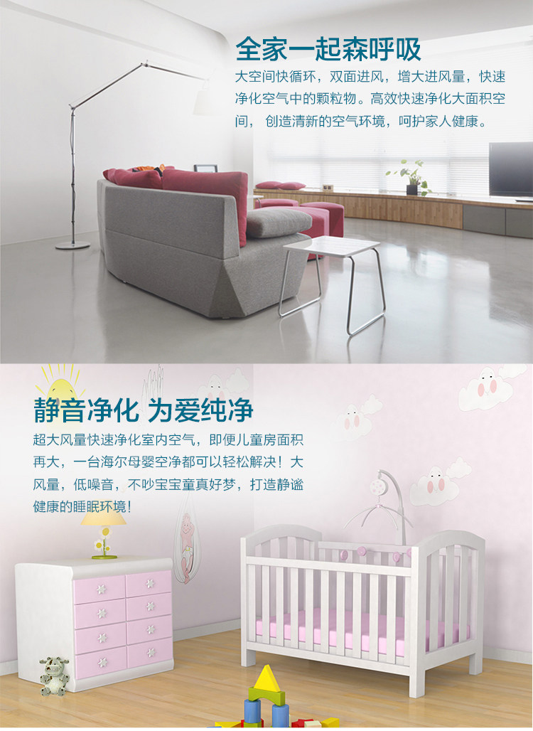 [海尔家电正品商城空气净化,氧吧]海尔母婴空气净化器KJ1000F/H月销量1件仅售3999元