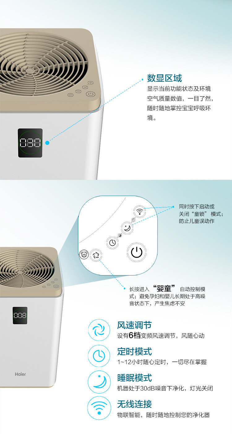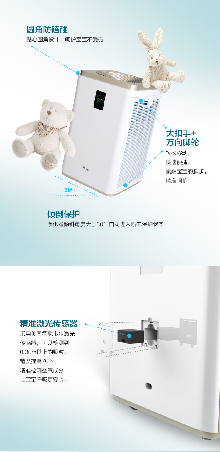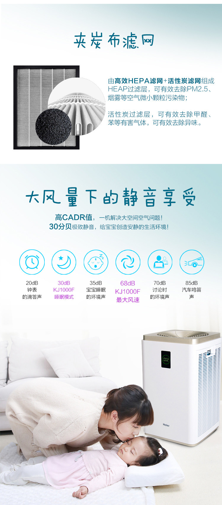 [海尔家电正品商城空气净化,氧吧]海尔母婴空气净化器KJ1000F/H月销量1件仅售3999元