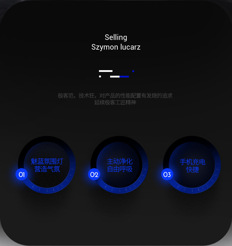 做工精致,手感很好,包装也很精美,迫不及待安装起来,声音很小,还有蓝色的氛围灯很舒服,送的淡淡的香膏散发出来得香味很舒服,也能感觉到空气在变好