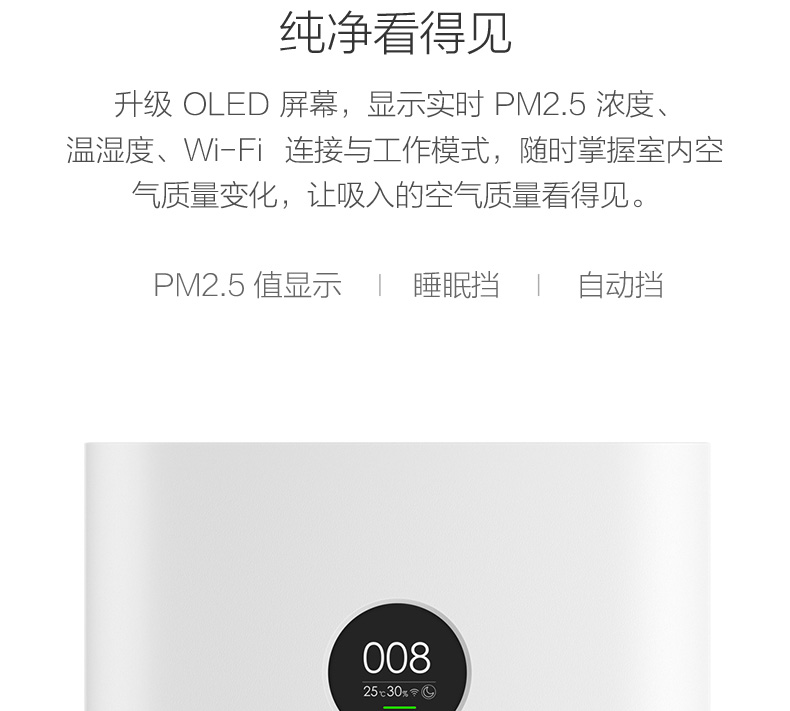 空气净化器。可以查看室温,湿度,还有PM2.5指数。只有一个按钮可以调控三种模式,感觉方便。开启后基本没有声音。在主卧室用了一下,绑定好了手机端小米APP,远距离也能够控制它。滤网有显示寿命,好像看说明书,两三个月就要更换一次了,感觉稍微有点麻烦,其他还不错~