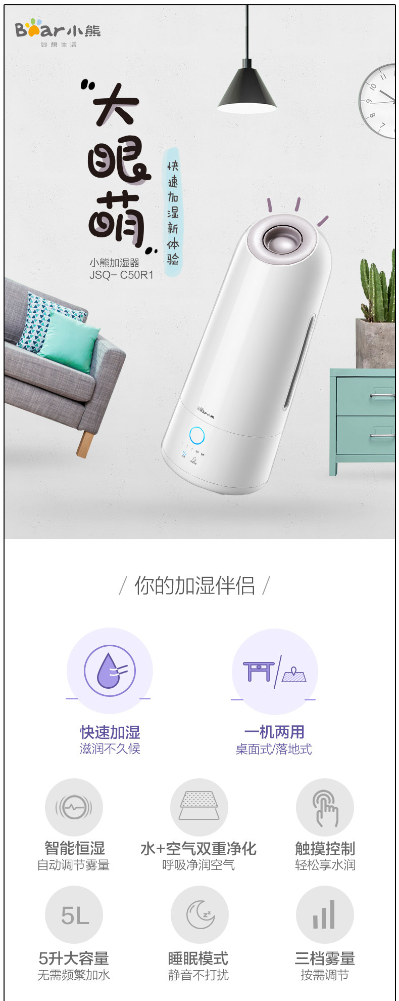 (75)[松京旗舰店加湿器]松京HU61智能落地式加月销量995件仅售139.9元