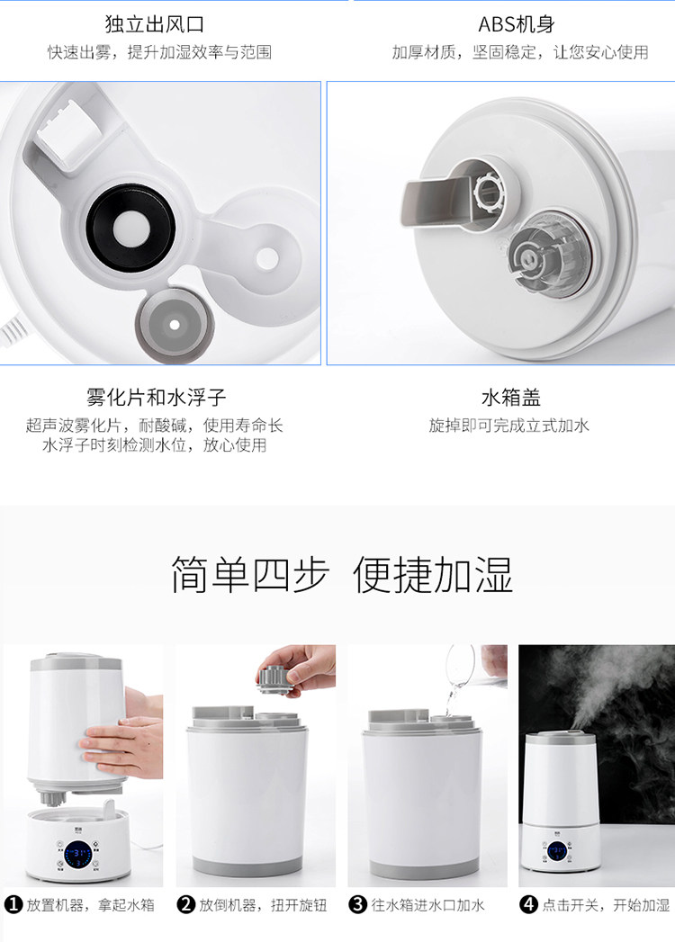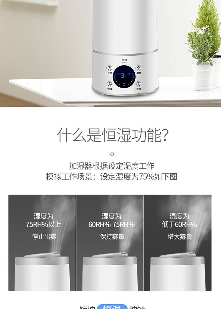 [墨器生活电器商城店加湿器]墨器空气加湿器家用静音卧室大容量办公月销量3件仅售89元