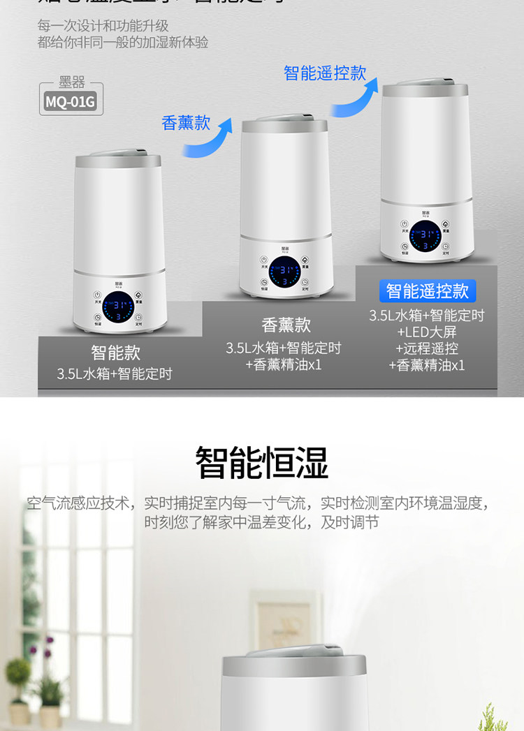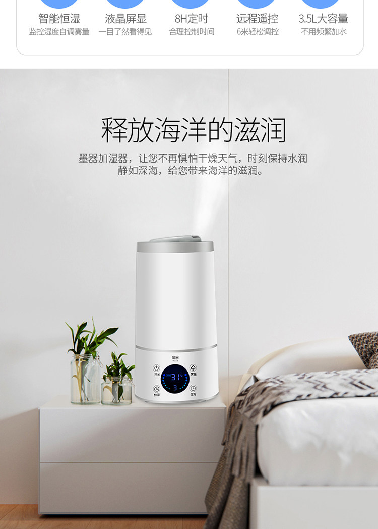 墨器空气加湿器家用静音卧室大容量办公室空调净化恒湿迷你香薰机