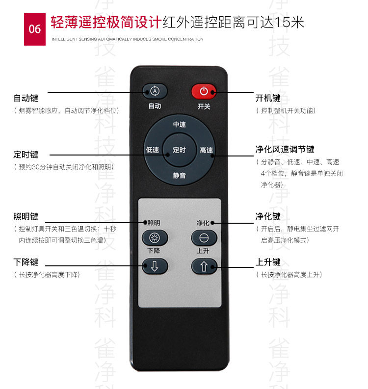 雀净麻将机吸烟灯家用全自动静音升降专用棋牌室空气净化器包安装