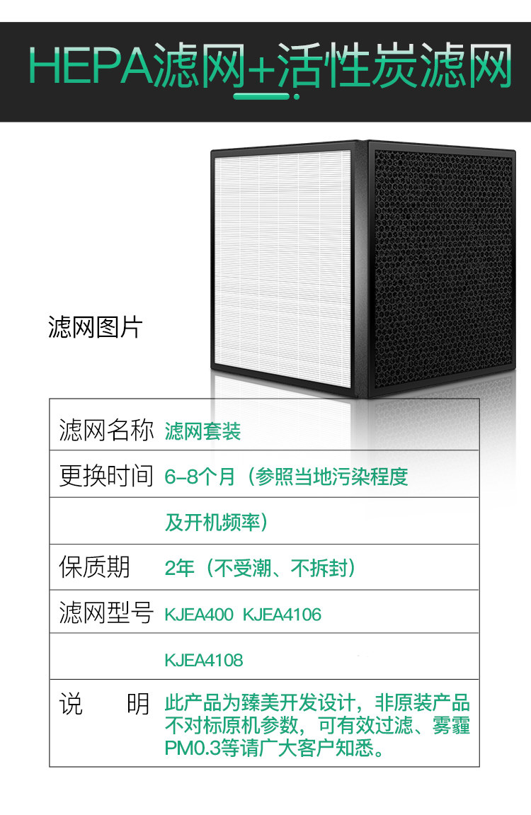 [臻美净化器滤网品牌直销店净化,加湿抽湿机配件]适配3M空气净化器KJEA400 4月销量0件仅售175元
