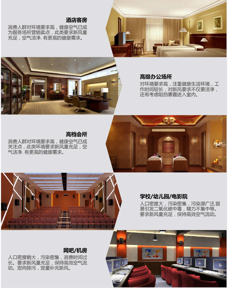替代新风处理设备,不必单设机房,可减少设备投资和建筑面积利用热回收技术节能降耗运行费用节约新风处理能耗30%以上,无冷热源供应,一体化结构减少维护工作量,节省人工费用。